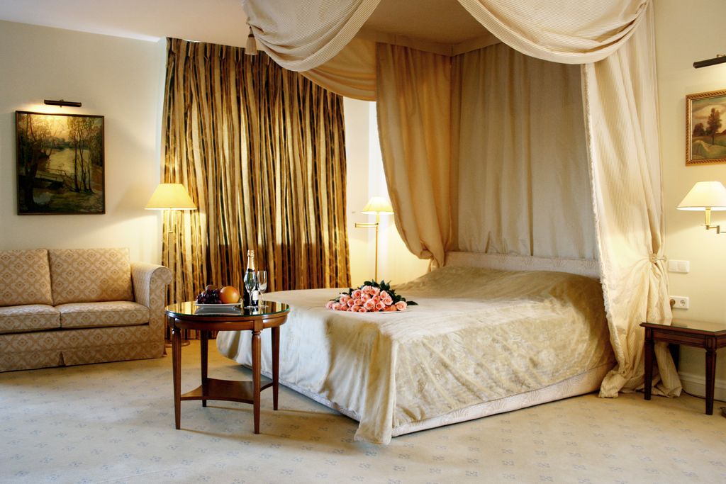 Главное здание насчитывает: 29 номеров, в т.ч. 11 двухместных номеров Comfort Room (от 6000 руб.), 9 просторных двухместных номеров Studio (от 7800 руб.), 6 элегантных номеров Deluxe Room (от 8700 руб.) и два номера Grande Luxe (от 16300), в т.ч. предназначенный для молодожёнов именной люкс “Императрица Анна” с кроватью под балдахином и роскошной ванной комнатой.